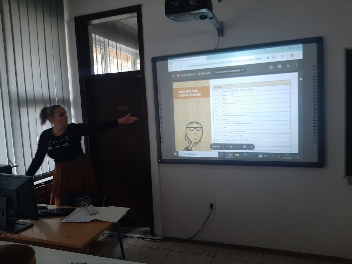 Psihologinja Irena Srdanović i defektologinja Josipa Markobašić provele su ciklus od četiri radionice s učenicima 5. razreda, usmjerene na razvoj vještina organizacije i učinkovitih metoda učenja. Kroz interaktivne aktivnosti učenici su učili kako planirati svoje vrijeme, organizirati školske obveze te primjenjivati različite strategije učenja, poput izrade bilješki, mentalnih mapa, korištenje mnemotehnika.
